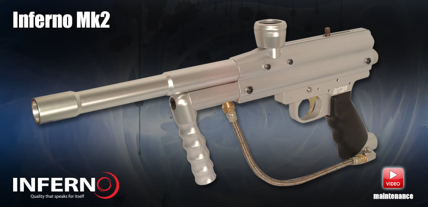 We offer a choice of paintball guns, or markers as we like to call them. Our latest standard marker of choice is the excellent Inferno Mk2.